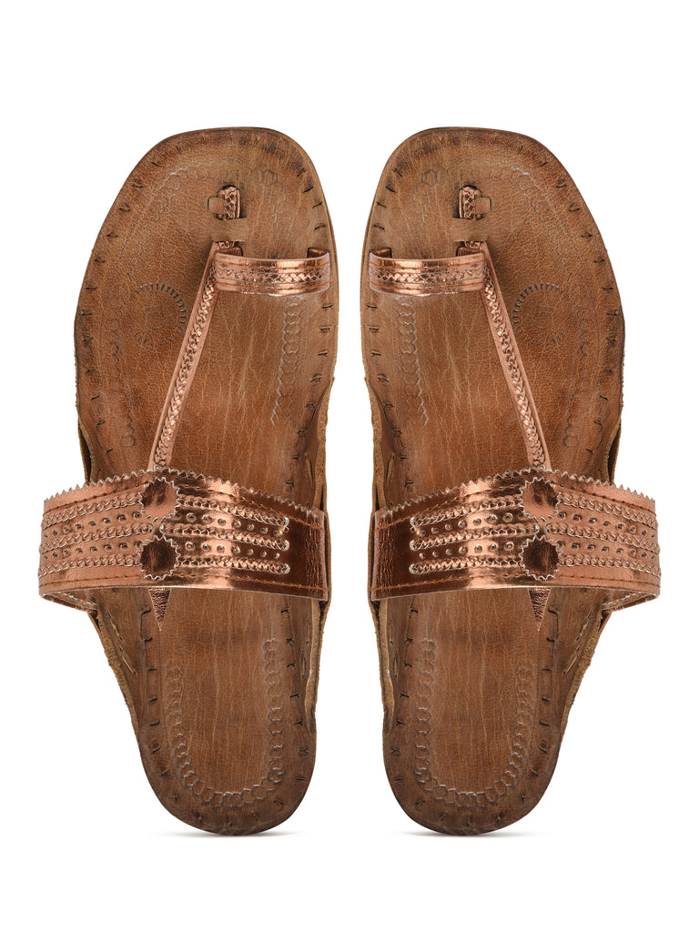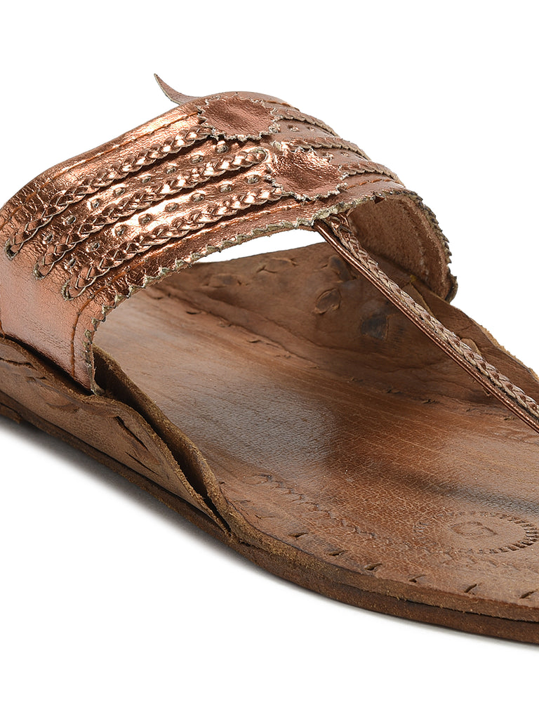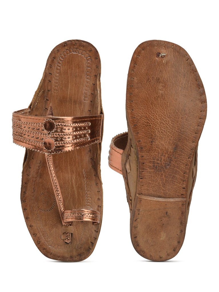 Women's Leather Copper Kolhapuri Sandal – Kolapuri Centre