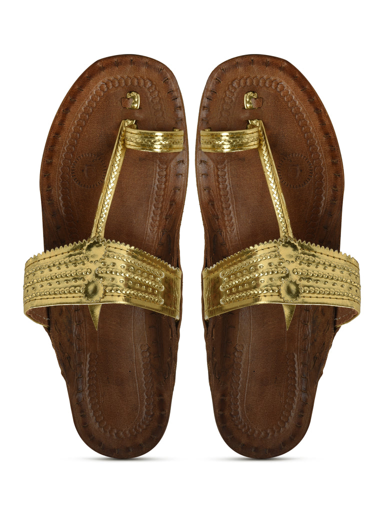 👣 Traditional Kolhapuri Design – Classic T-strap pattern with hand-braided detailing for a timeless ethnic look.