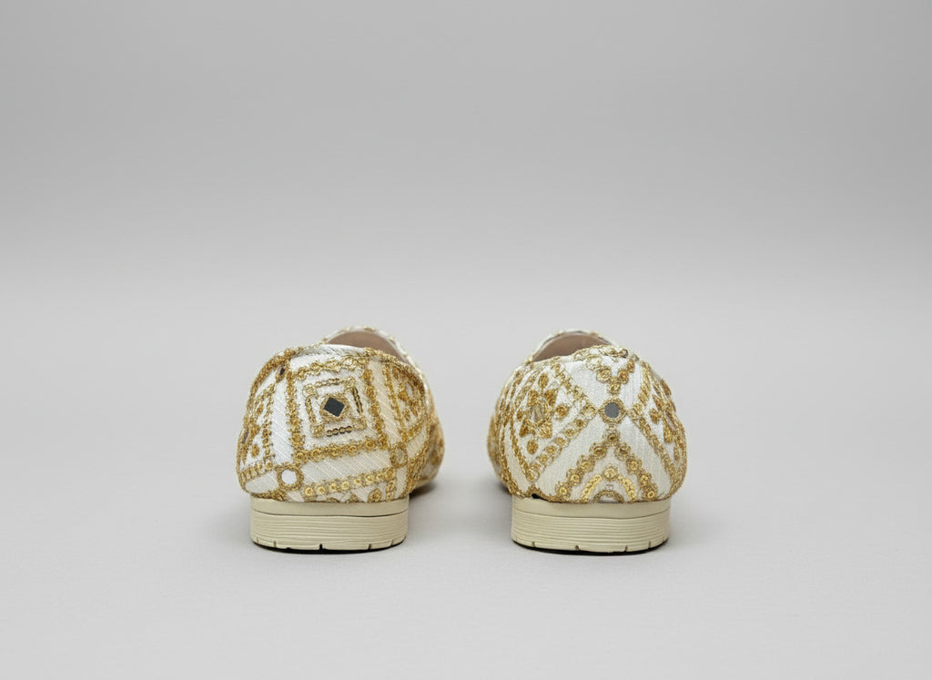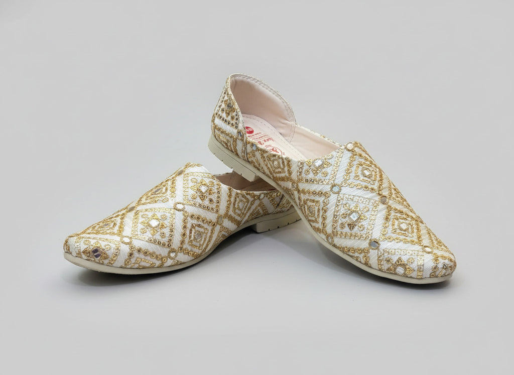 Adorned with mirror and sequin embellishments, each pair reflects timeless artistry inspired by traditional Indian craftsmanship. Whether you're attending a wedding, sangeet, festival, or cultural event, this jutti adds an instant royal touch to every outfit.